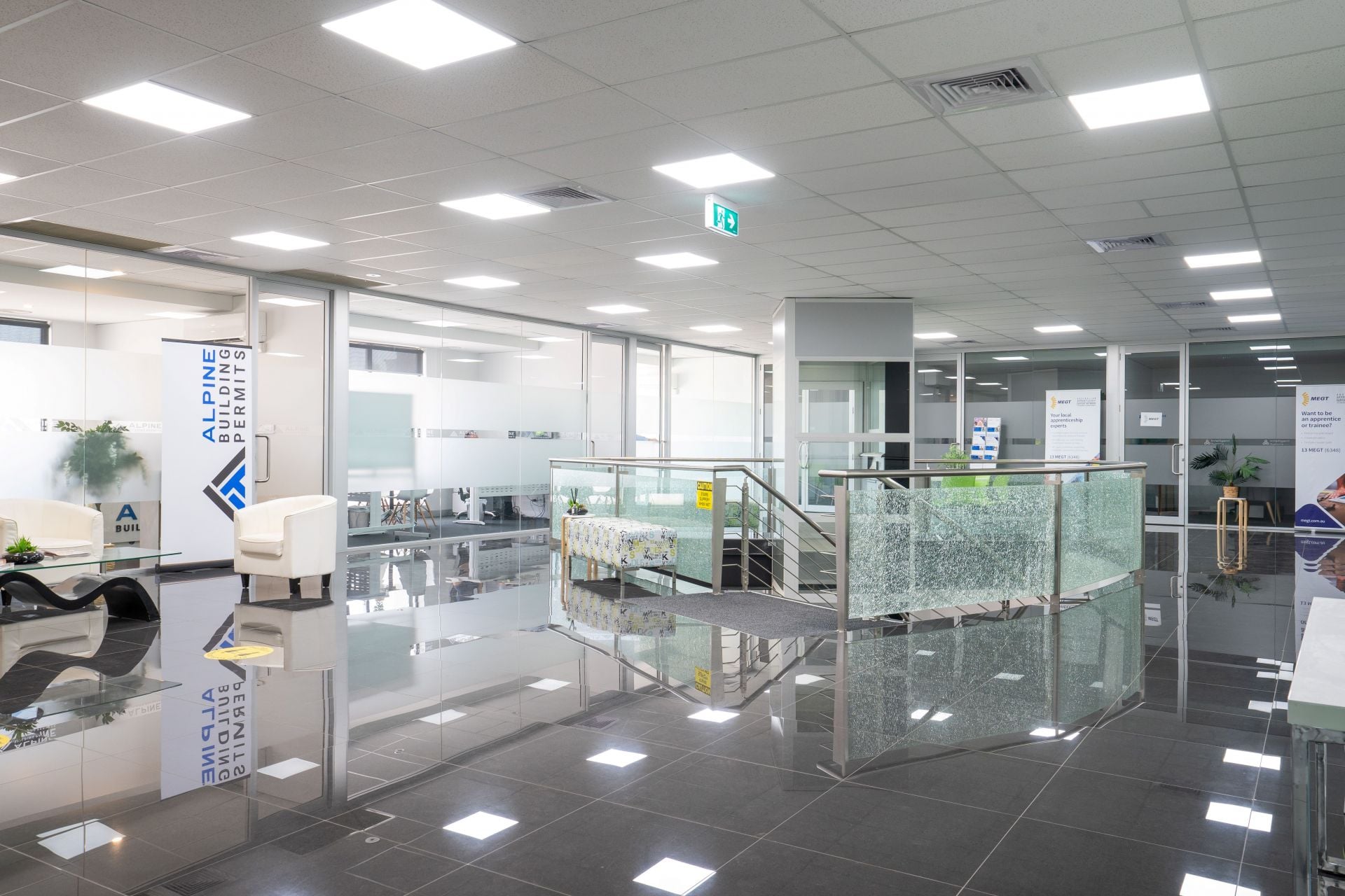 - 20 Immaculate corporate office suites on level 1 with reception, boardroom and kitchen.